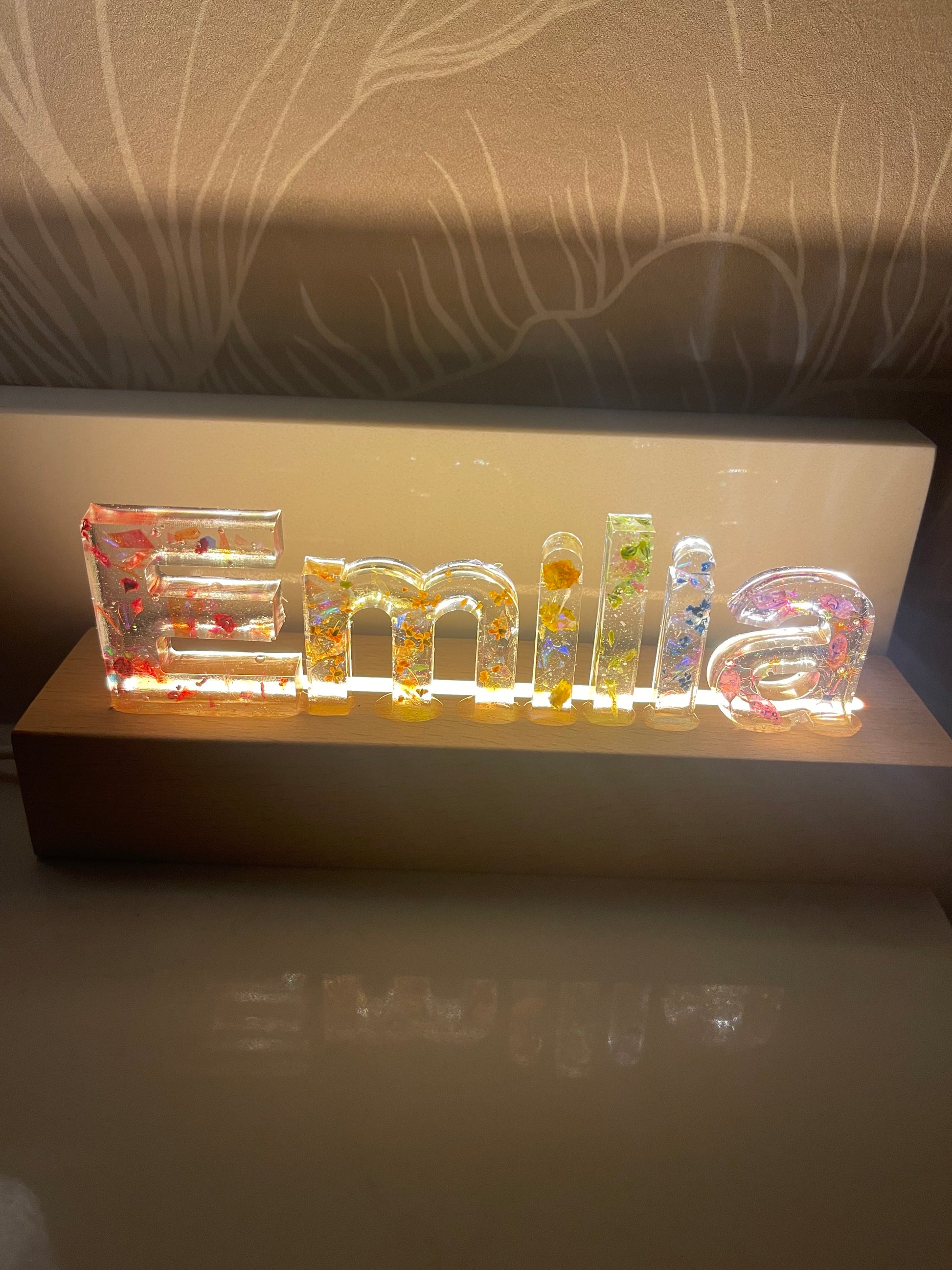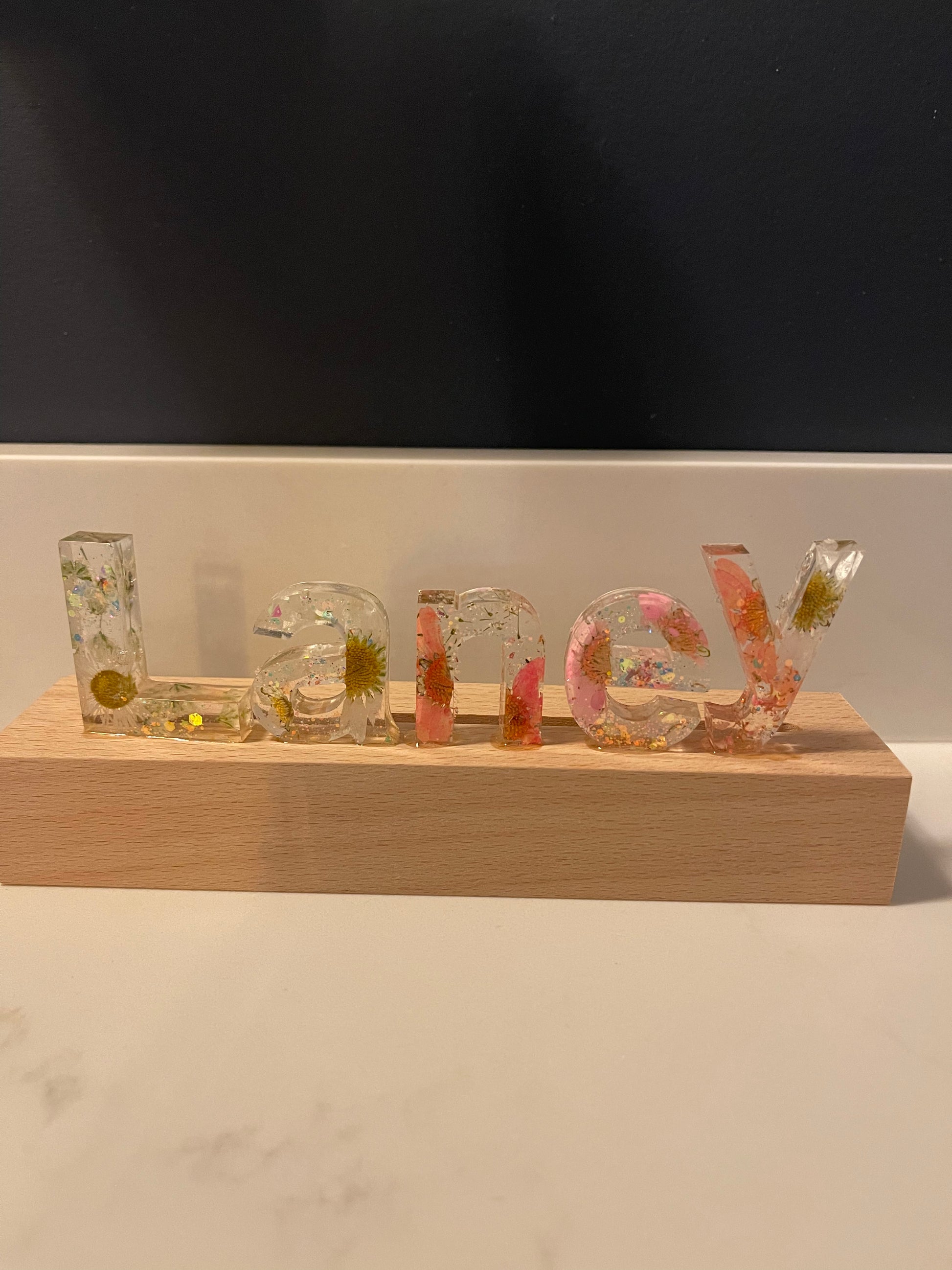 The ultimate gift! A gorgeous LED light up resin strip 7” long. The perfect accessory to any room, office or workplace. Pricing is for 4 letters. To add letters to this accessory check the options.