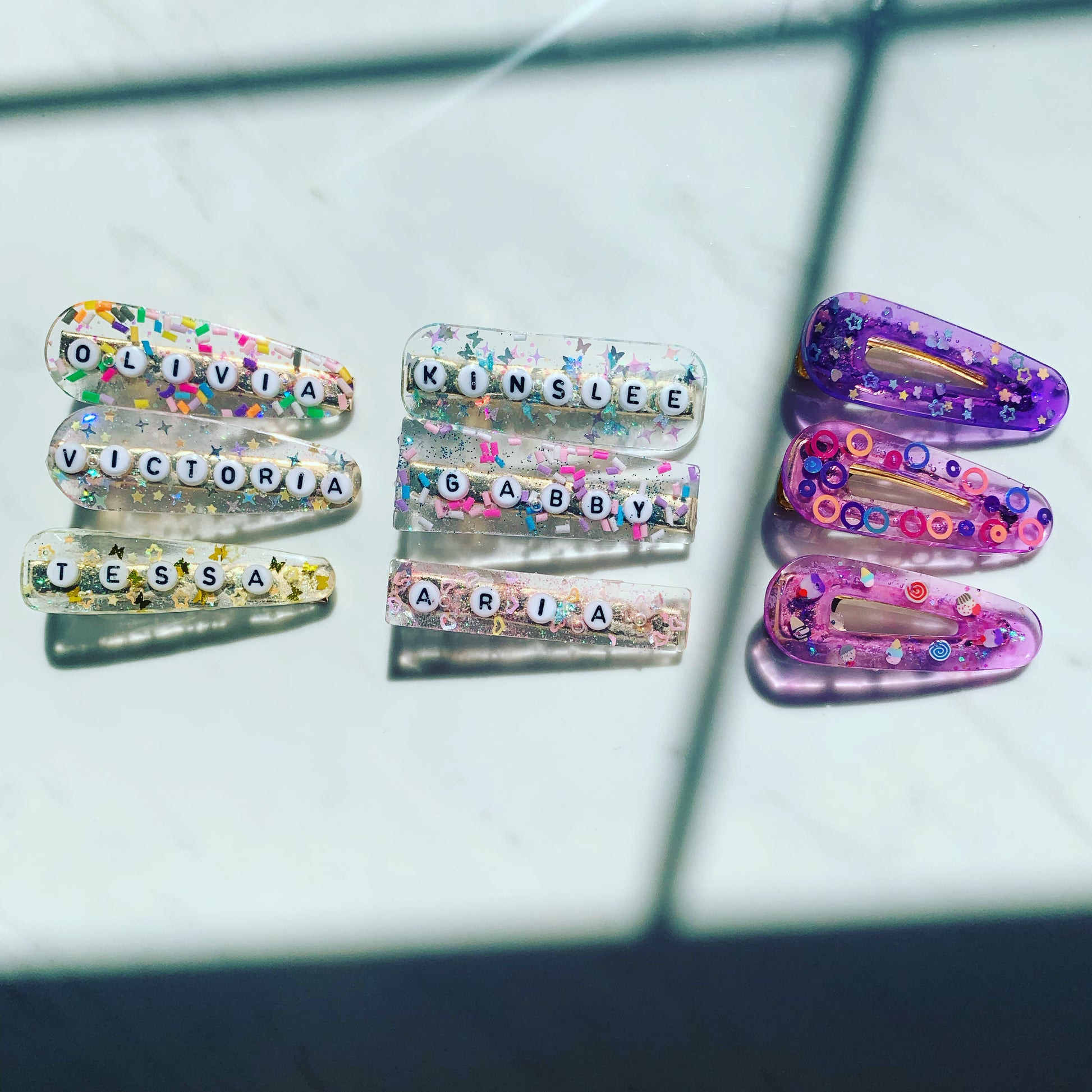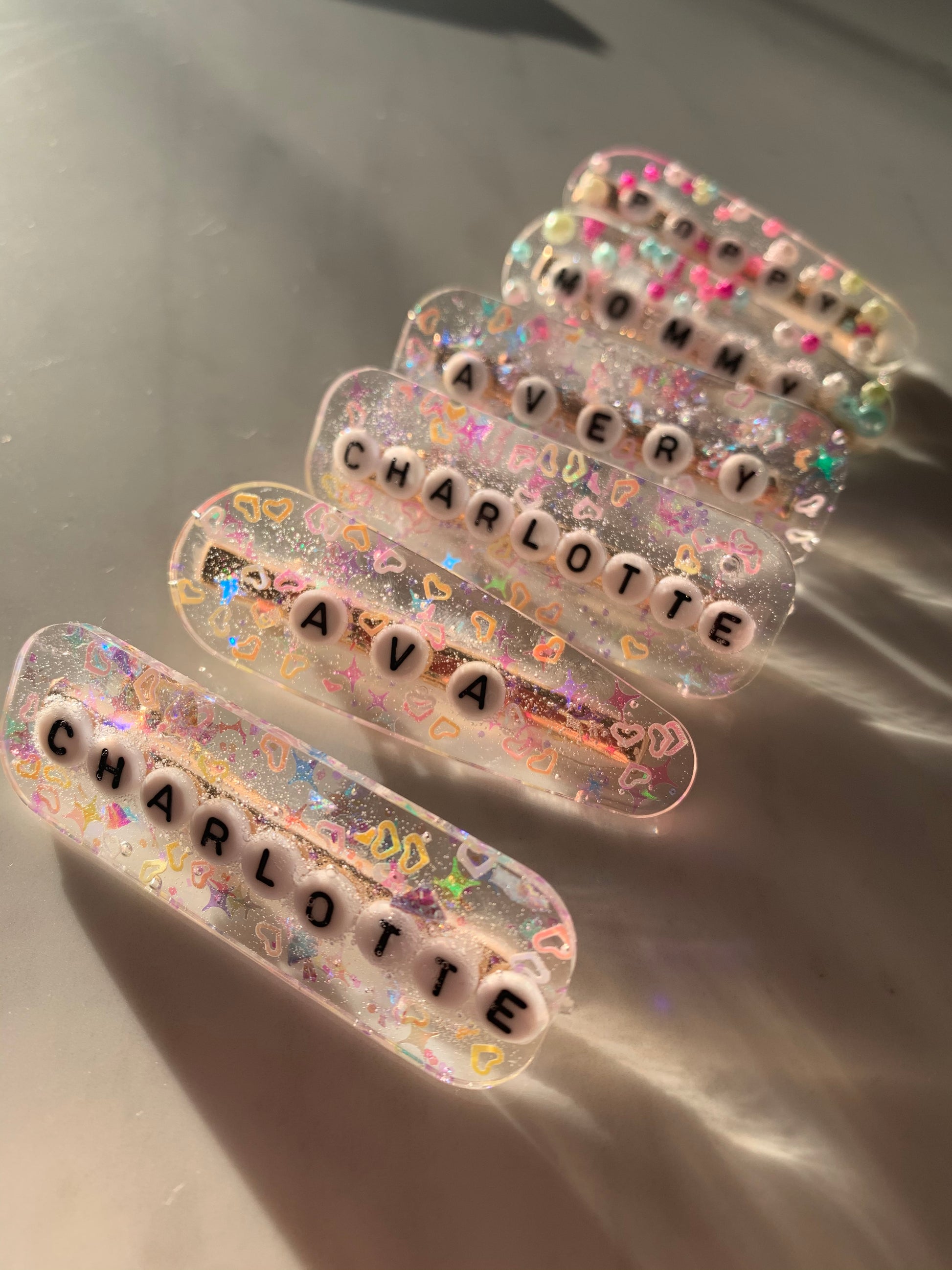Every little ladies dream! Make no mistake, this product has no age limit. These are so practical for any one at any age. Sparkle hair clips are sold in pairs, hair clips with names are sold individually.