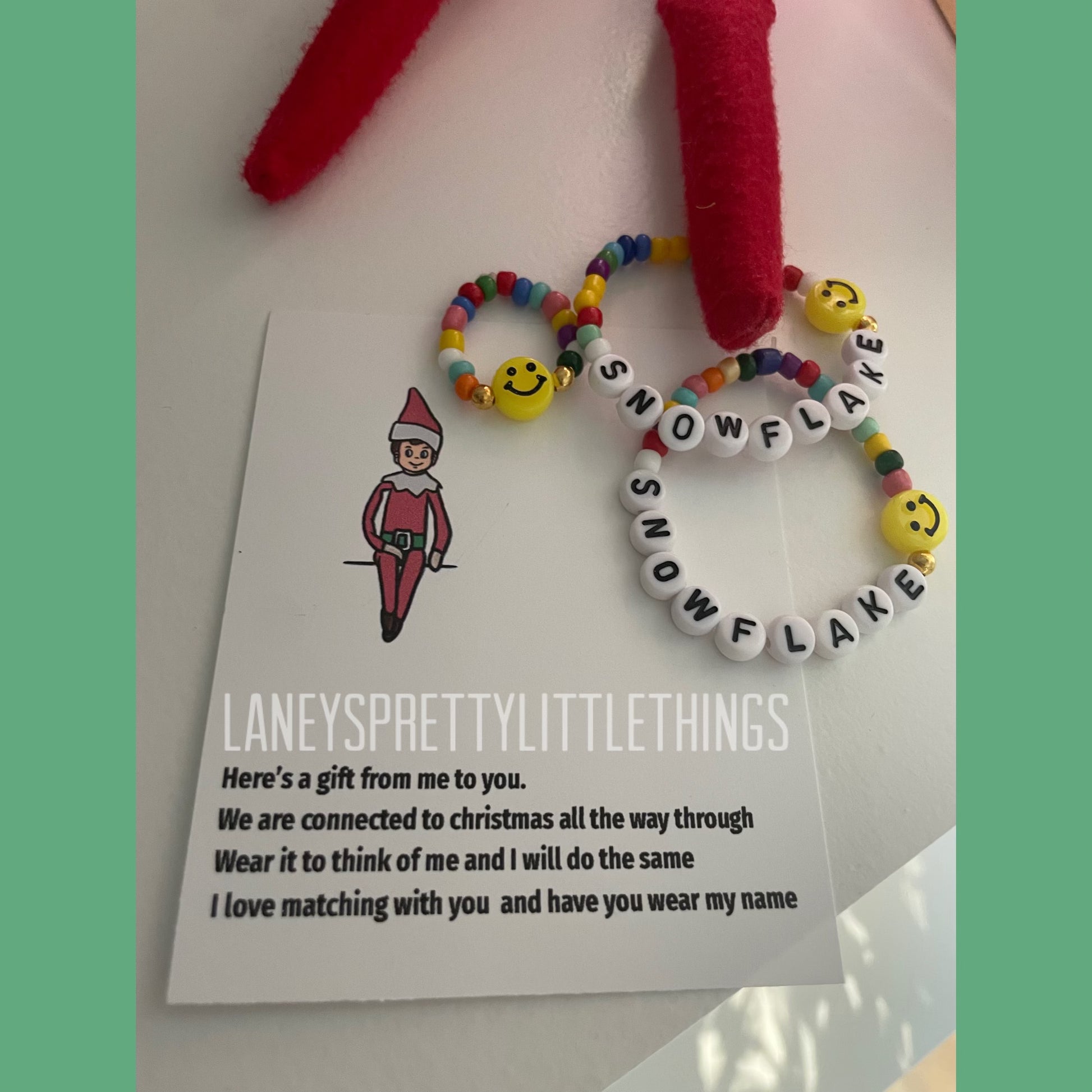 The best way to get into the Christmas spirit is having your little match your elf! Comes with an amazing, original poem written by me and my mom! Set comes with one bracelet for your little and one mini matching elf bracelet. Have more than one child? No problem! Select the amount you’d like and leave the rest to Laney!